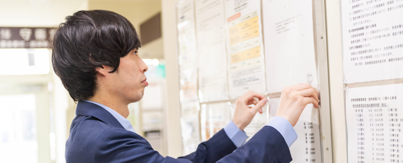 病院の医事課は専門的な知識が必要な場所です。とは言え、私自身も専門学校で勉強していたものの、学校で学んだ知識よりも入職してから覚えた知識の方が圧倒的に多いです。課内には教育担当もいて、わからないことはすぐ聞きやすい環境が整っているので、例え知識に不安があっても働きながら覚えていけます。